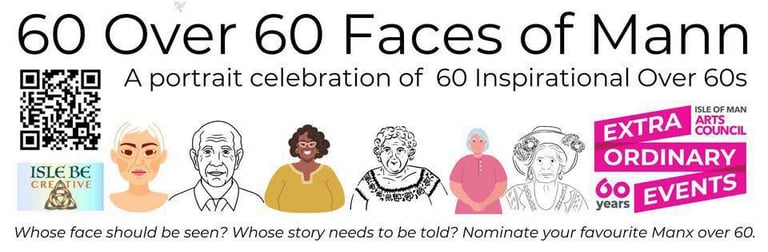 Isle Be Creative supported by the Isle of Man Arts Council exhibition at the Hodgson Loom Gallery, November - January, 2025. 'Frank Cowin' portrait exhibited.